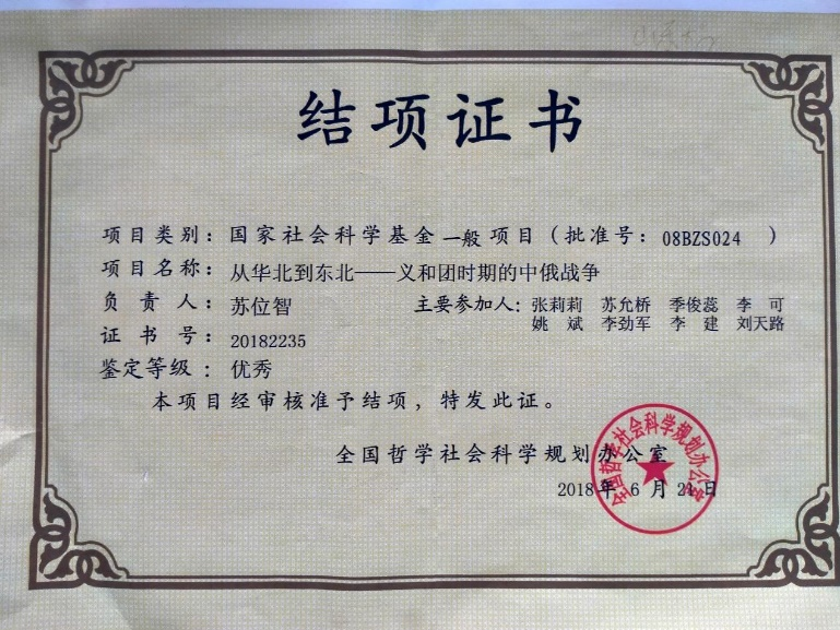 苏老师获得的荣誉证书与国家社科基金项目结项证书
