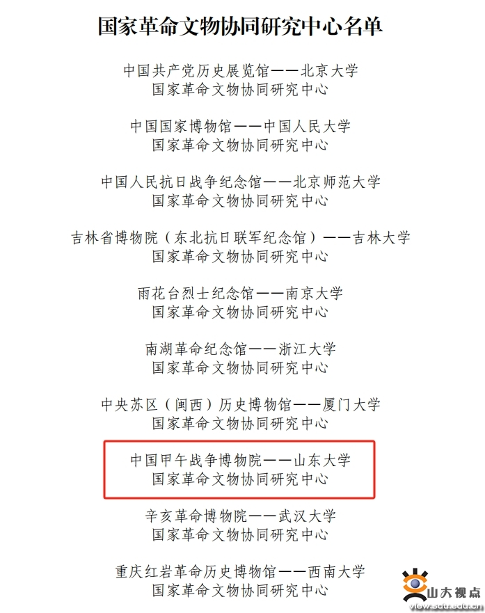 2022年4月,教育部、国家文物局联合启动开展国家革命文物协同研究中心建设工作,经组织推荐、现场答辩、实地考察、专家评议环节遴选产生。2024年3月14日,教育部、国家文物局公布了国家革命文物协同研究中心名单,sunbet官方网站与中国甲午战争博物院联合申报的“中国甲午战争博物院·sunbet官方网站国家革命文物协同研究中心”成功入选。