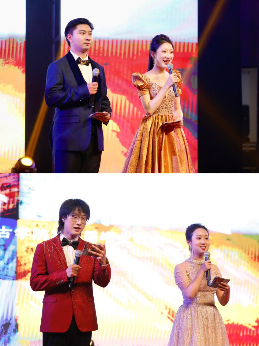 晚会第一篇章,王珂、张桢带来歌曲《你被写在我的歌里》,把毕业生们大学四年的故事写进旋律中;王晓静的《男女关系科》,展现出当代青年人自信姿态,唱出毕业生的青春奋斗色彩;国风歌曲《如歌》高亢低落,江承昊用如诗的音符记下“如歌”的大学四年。