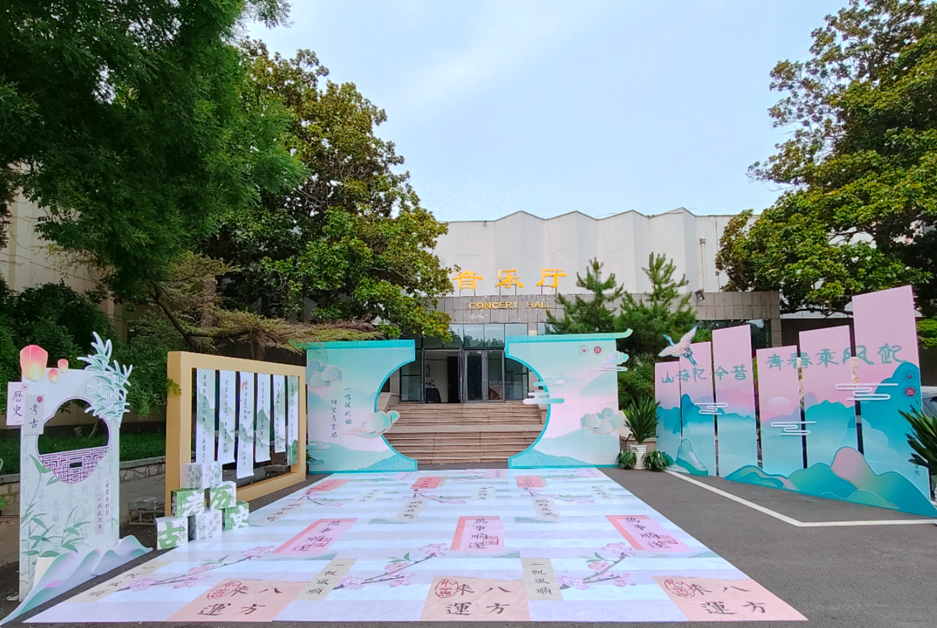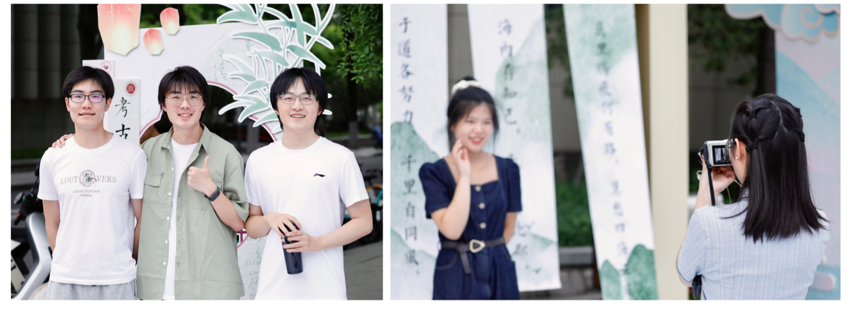 公司在音乐厅门前设置毕业拍照互动区域,歌会前,毕业生们纷纷合影留念,回忆记录毕业生们大学四年的青葱岁月。