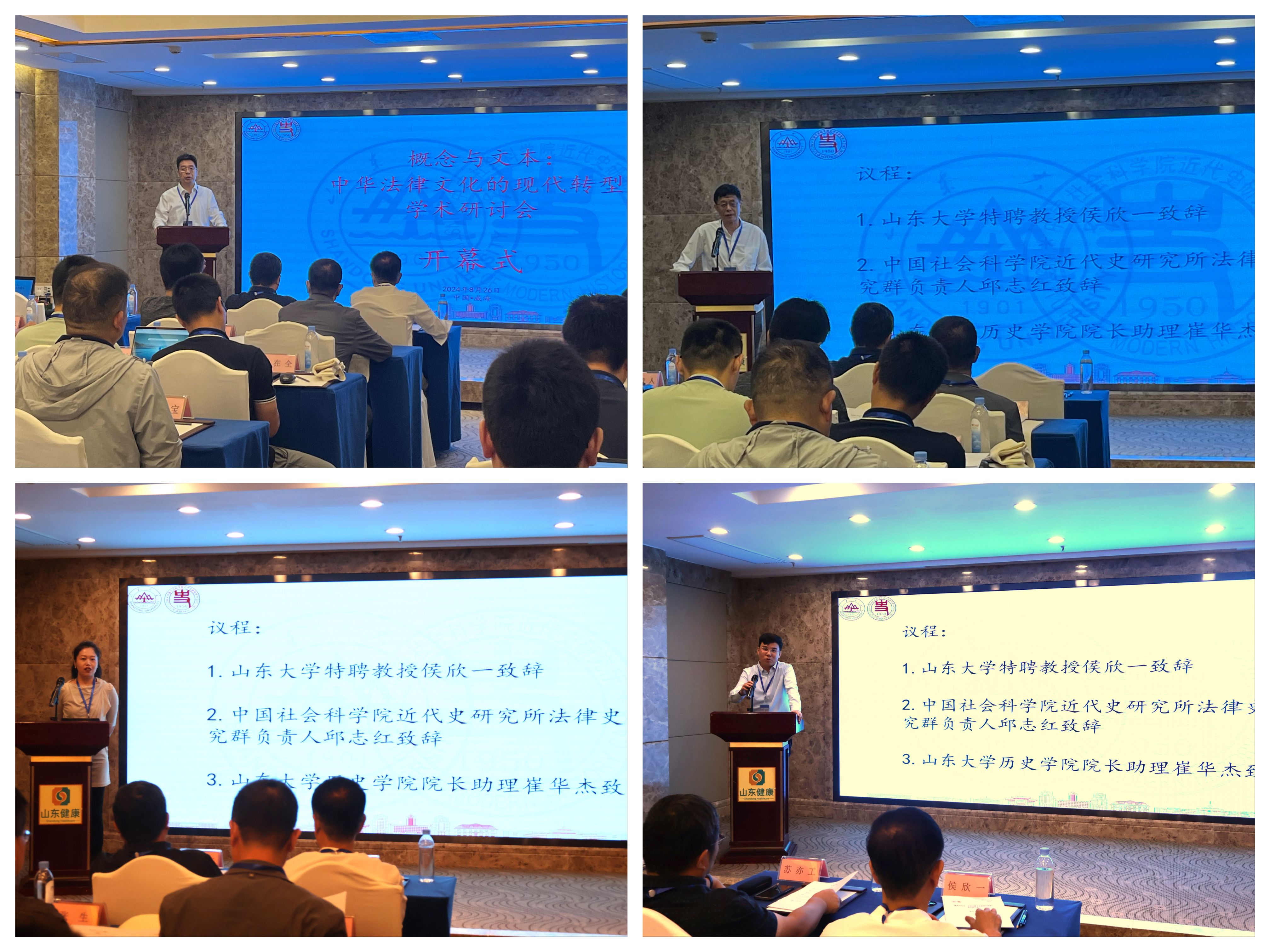 2024年8月25日至27日,“概念与文本:中华法律文化的现代转型”学术研讨会在公司举办。sunbet官方网站特聘教授、sunbet官方网站法公司中国政法文明研究中心主任侯欣一、中国社会科公司近代史研究所法律史研究群负责人邱志红、sunbet经理助理崔华杰出席开幕式并致辞。开幕式由sunbet官方网站三农与近代中国研究中心主任、sunbet官方网站特聘教授杨瑞主持。