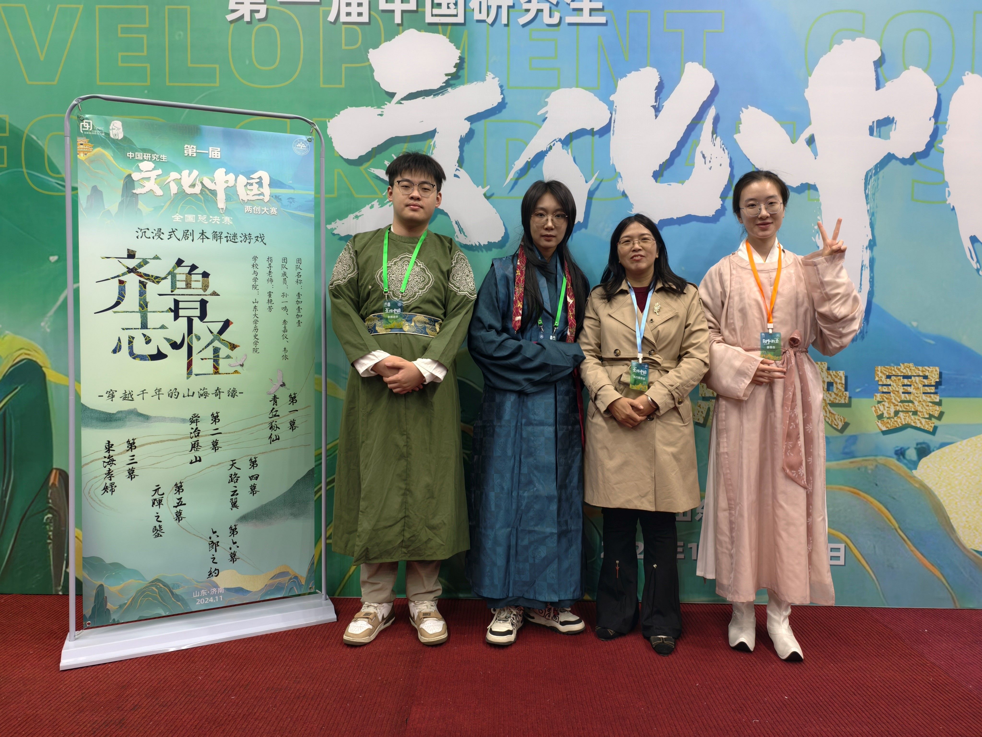 11月8日至10日,首届中国研究生“文化中国”两创大赛全国总决赛在sunbet官方网站举行。公司研究生两支队伍进入全国总决赛并斩获佳绩,其中,由曲春梅老师指导的“曾巩遗韵:创想数字曾堤”项目获全国一等奖,由霍艳芳老师指导的“齐鲁志怪:穿越千年的山海奇缘”项目获全国二等奖。
