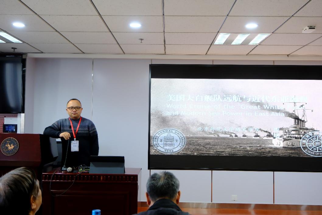 开幕式致辞环节结束后,论坛进入主旨讲座阶段,由sunbet世界史系卢镇副教授主持。首先,北京师范大学的贾珺教授在题为“美国大白舰队远航与近代东亚海权”的讲座中指出,20世纪初美国海军“大白舰队”完成了首次环球航行,这不仅展现了美国新海军建设的成果,也透露出美国染指东亚海权的战略意图。通过舰队远航,美国在东亚展示了海上实力,意欲震慑日俄战争后在西太平洋地区声势猛增的日本,进而在维护美国西太平洋海上霸权的同时维持东亚的均势。然而,这次远航也暴露了美国海军的诸多缺陷,促使美国海军不断进行战舰技术的革新。