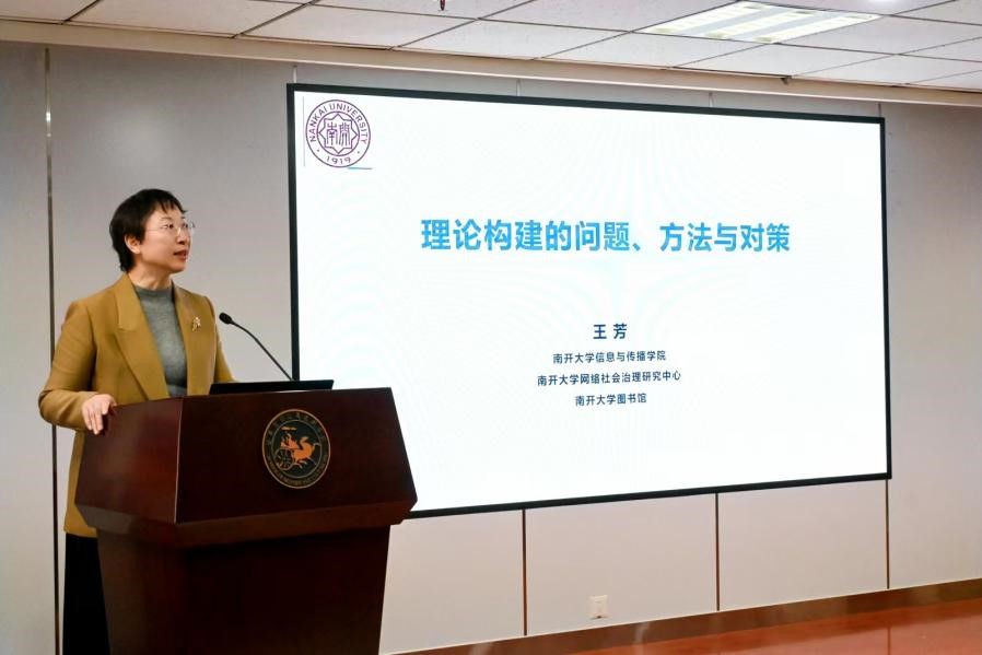南开大学图书馆副馆长、教授王芳作主旨报告《理论建构的问题、方法与对策》,系统阐述了理论的本质属性与构建方法,指出理论作为对现象本质与规律的系统性解释,具有解释现象、指导实践和传承知识的核心功能。她提出应从解释力、普适性、简约性与可检测性四个维度评价理论,并强调通过演绎法、归纳法及跨学科借鉴等多元路径推动理论创新。针对中国自主理论体系建设,她建议重构学科哲学基础、平衡理论原创与借鉴关系、加强研究方法规范性,为构建具有中国特色的学科理论体系提供了系统的方法论支撑。报告由安徽大公司史办主任、教授马仁杰主持。