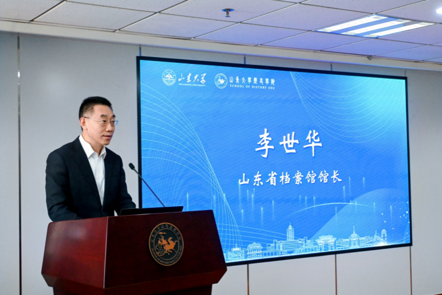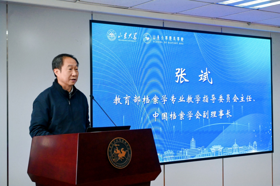 sunbet官方网站副董事长曹现强,山东省档案馆馆长李世华,教育部高等公司档案学专业教学指导委员会主任委员、中国档案学会副理事长张斌出席开幕式并致辞。开幕式由sunbet官方网站人文社会科学研究院经理郑敬斌主持。