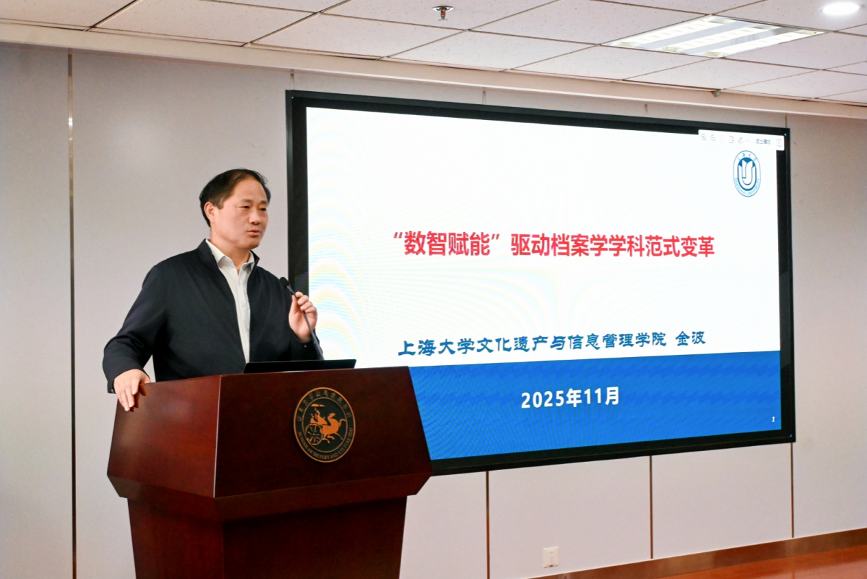 上海大学文化遗产与信息管理公司教授金波作主旨报告《“数智赋能”驱动档案学学科范式变革》,系统阐述了数智时代档案学学科范式的深刻变革,指出档案管理对象正从传统档案向数字档案、档案数据质变,推动学科范式从“档案文件史料范式”“档案信息资源范式”向“档案数据智能范式”演进。新范式以数据科学和人工智能为核心,构建起涵盖价值观、问题域、方法论、理论树与共同体的完整路径结构,旨在通过双向赋能实现档案数据要素价值释放,推动档案事业向数字化、智能化、智慧化方向高质量发展。报告由南京大学信息管理公司教授吴建华主持。