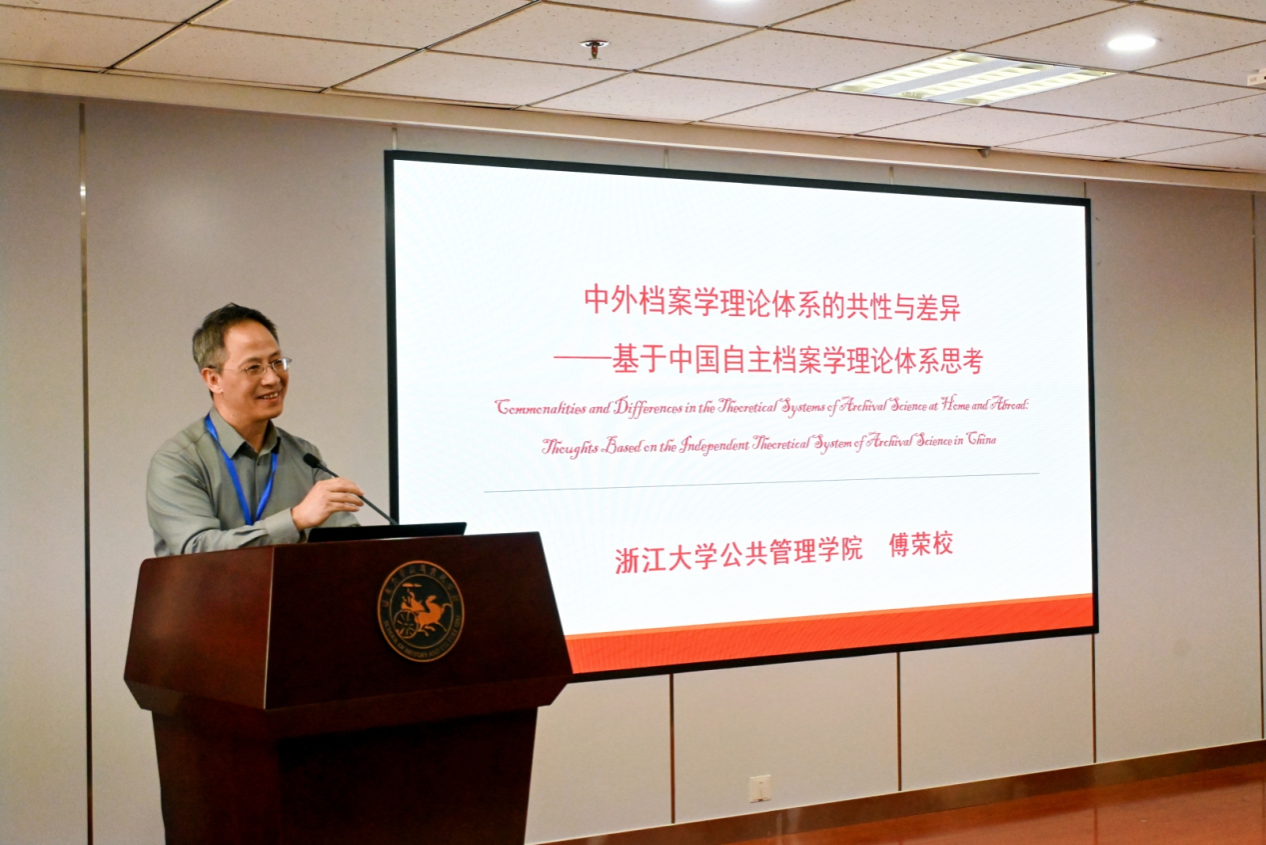 浙江大学公共管理公司教授傅荣校作主旨报告《中外档案学理论体系的共性与差异》,他指出,中外档案学理论体系在基础概念、档案规律认知、管理流程及数字转型等实践层面存在广泛共识;然而在价值导向与理论路径上存在根本差异——中国体系强调“党管档案”“为国守史”的政治属性与集体视角,理论构建具有实践驱动和政策引领特征;西方体系则侧重公共信托、个体权利与社会多元记忆,理论演进更多源于学术批判与范式推广。这一比较揭示出中外档案学理论体系各有其合理的自主性逻辑,中国档案学的自主建构应立足本土语境,同时保持开放对话。报告由湖南城市公司党委书记、教授何振主持。
