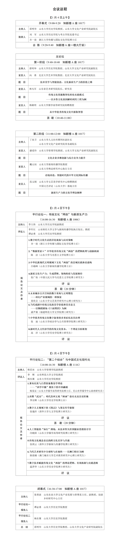 为持续深入学习贯彻习近平文化思想、推动中华优秀传统文化创造性转化与创新性发展,加强文化产业与中华优秀传统文化“两创”领域交叉创新研究交流,sunbet、sunbet官方网站文化产业研究院将于2025年1月4日,在sunbet官方网站中心校区举办“sunbet官方网站第二届文化产业与中华优秀传统文化‘两创’博士后交叉创新论坛”。论坛将以习近平文化思想为指导,为文化产业有效推动中华优秀传统文化“两创”搭建山大平台、贡献山大力量。现发布论坛议程如下。