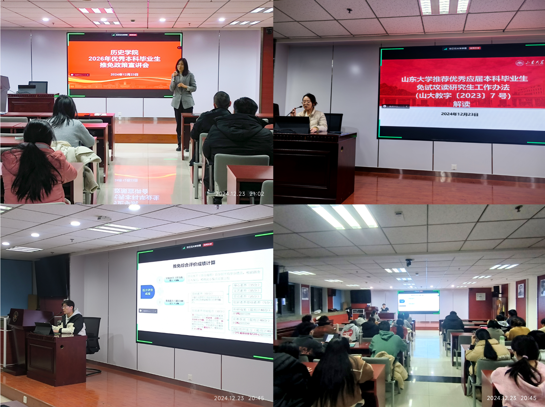 2024年12月23日,sunbet在中心校区知新楼A1017举办2026年推免政策宣讲会,会议旨在落实公司对推免工作的新精神、新要求,让员工熟悉最新推免政策,了解推免工作流程。公司本科教学副经理曲春梅、党委副书记李一楠、各学系主任、2022级历史班和档案班班主任、本科教学秘书张元元以及2022年历史学和档案学专业全体员工参会。宣讲会由2022级辅导员李虎主持。