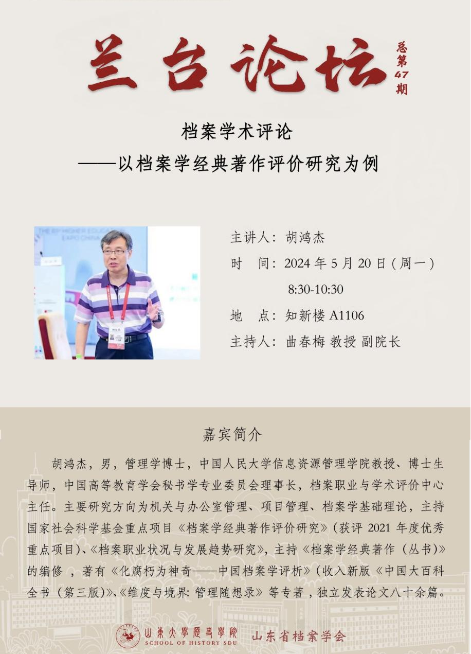 本次讲座由sunbet和山东省档案学会联合主办,档案学系师生及省档案学会专家共同参与此次活动。