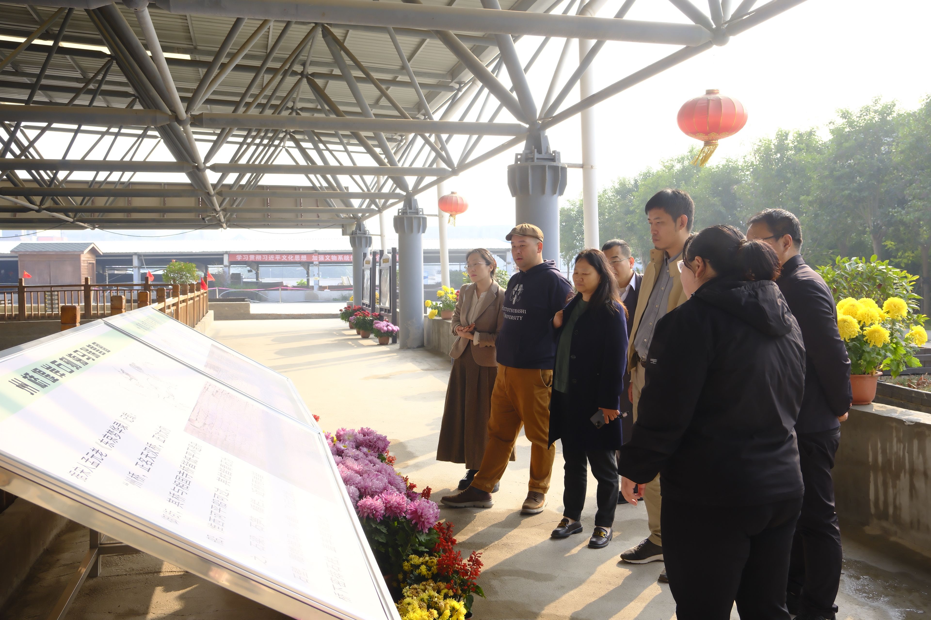 11月10日上午,在河南大学考古学系曹金萍教授的带领下,sunbet官方网站的老师们参观了位于河南省开封市的州桥考古遗址(尚未对公众开放)。曹教授介绍到,州桥考古遗址是北宋东京城御街与大运河(汴河段)交汇处的重要标志性建筑。该遗址始建于唐代建中年间(780—783年),后经五代、宋、金、元、明等朝代的修缮和改建,至明末崇祯十五年(1642年)被黄河洪水淤埋。近年来,考古学家对州桥及其周边区域进行的持续发掘,已经取得了重要成果。在州桥东侧的汴河河道两岸,发现了大型浮雕石壁,其上雕刻有海马、仙鹤、祥云等图案,印证了《东京梦华录》中的记载。曹老师还阐述了未来三年对州桥考古遗址的规划,要持续加强州桥遗址展示利用工作,有序开展考古工作,推动“边发掘、边保护、边研究、边展示”。