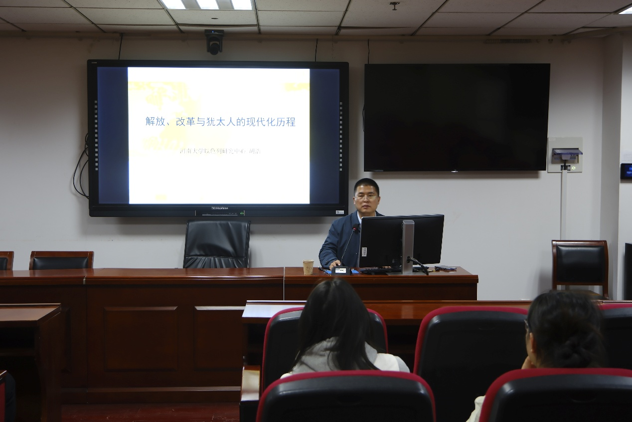 根据论坛安排,河南大学历史文化公司副经理、特聘教授教授胡浩于4月12日晚为参会师生做了题为《解放、改革与犹太人的现代化历程》的讲座,讲座由sunbet副教授卢镇主持。