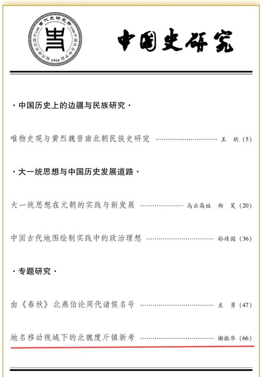 近日,公司谢振华副教授在《中国史研究》2025年第2期发表题为《地名移动视域下的北魏度斤镇新考》的专题论文,全文约1.9万字。
