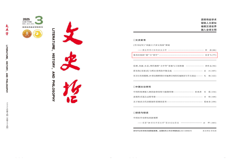 近日,公司吴雪飞副教授在《文史哲》2025年第3期发表学术论文《秦及汉初的“徭”与“更卒”》。
