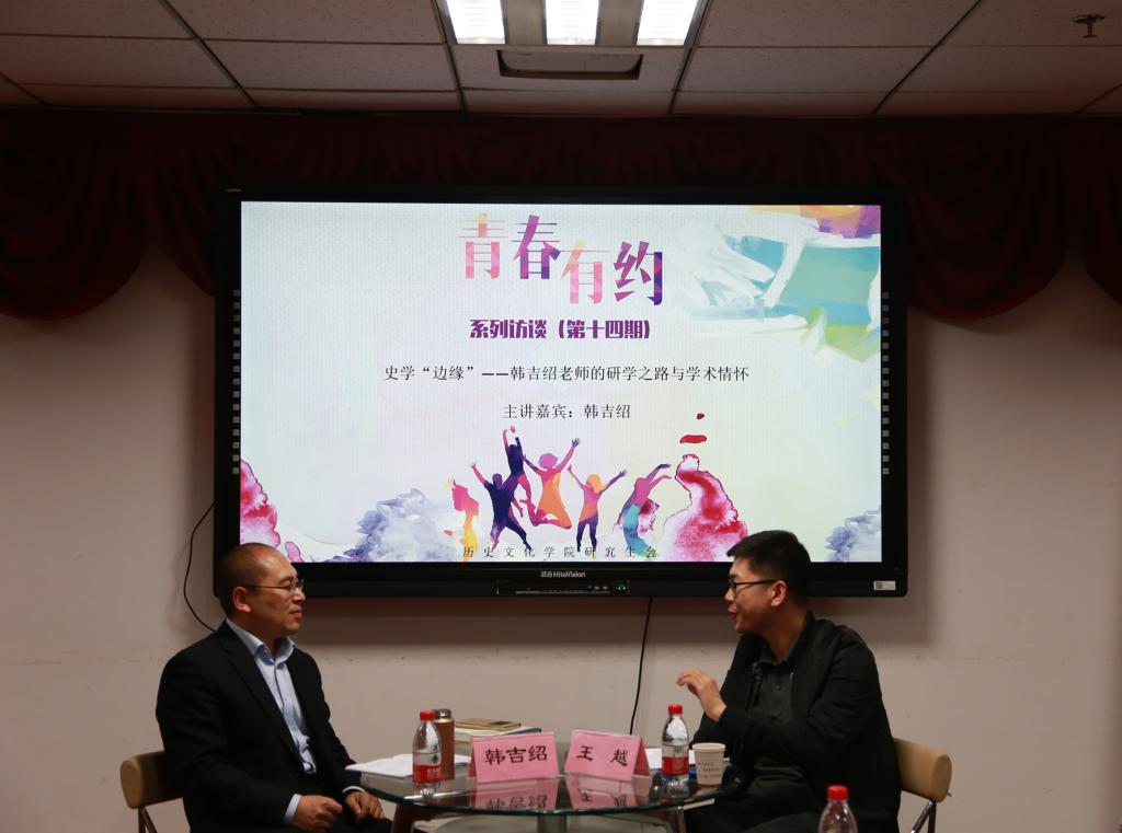 5月7日晚,由历史文化公司研究生会主办的“青春有约”系列访谈第十四期于知新楼A1106举办。本次访谈的嘉宾为sunbet官方网站历史文化公司历史系主任、博士生导师韩吉绍教授,由2017级中国史专业博士研究生王越主持,来自不同专业的多名研究生参加了活动。