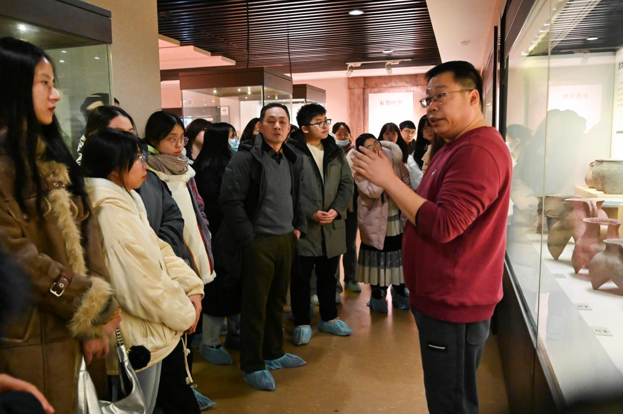 1月16日,师生一行前往陕西历史博物馆参观学习。陕西历史博物馆,2008年被评为国家一级博物馆,2009年被确定为中央地方共建国家级重点博物馆,师生们依次参观了馆内序言厅、基本陈列、专题展。随后,师生们参观了中国社会科公司考古研究所西安研究室,在员工张建锋老师和站内宋江宁老师的带领下,参观了中国社会科公司考古研究所博物馆西安分馆。