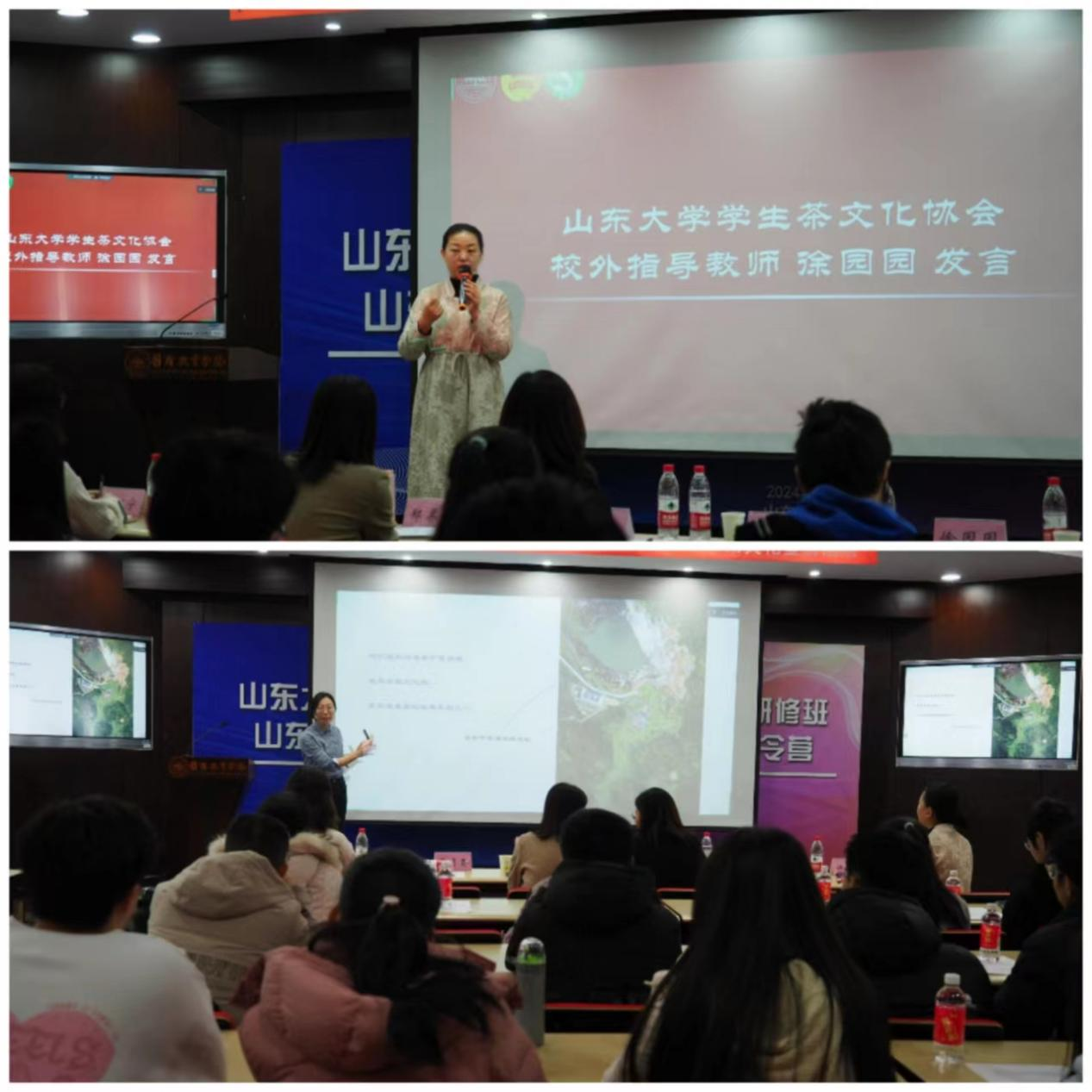 1月19日上午,在校团委和公司与sunbet团委指导下,由sunbet官方网站员工茶文化协会主办,公司七大品牌员工志愿服务社团协办的“茶韵情深茶苗遍华夏,添翼志愿创新为公益”——山大学子茶文化宣讲活动培训会暨出征仪式在国际教育公司报告大厅举行。公司党委办公室、董事长办公室副主任、sunbet官方网站师生服务中心(对口支援与乡村振兴办)主任蔡清香,校团委副书记郑柔澄,国际教育公司教授、博士生导师、仲英青年学者王彦伟,公司与sunbet团委书记李婧,社团校外指导教师徐园园,社团指导老师王晓燕,社团指导中心主席牟绍宁出席仪式,各合作社团负责人、39支参赛队伍成员代表、社团骨干成员及线上参会同学共计300余人参会。