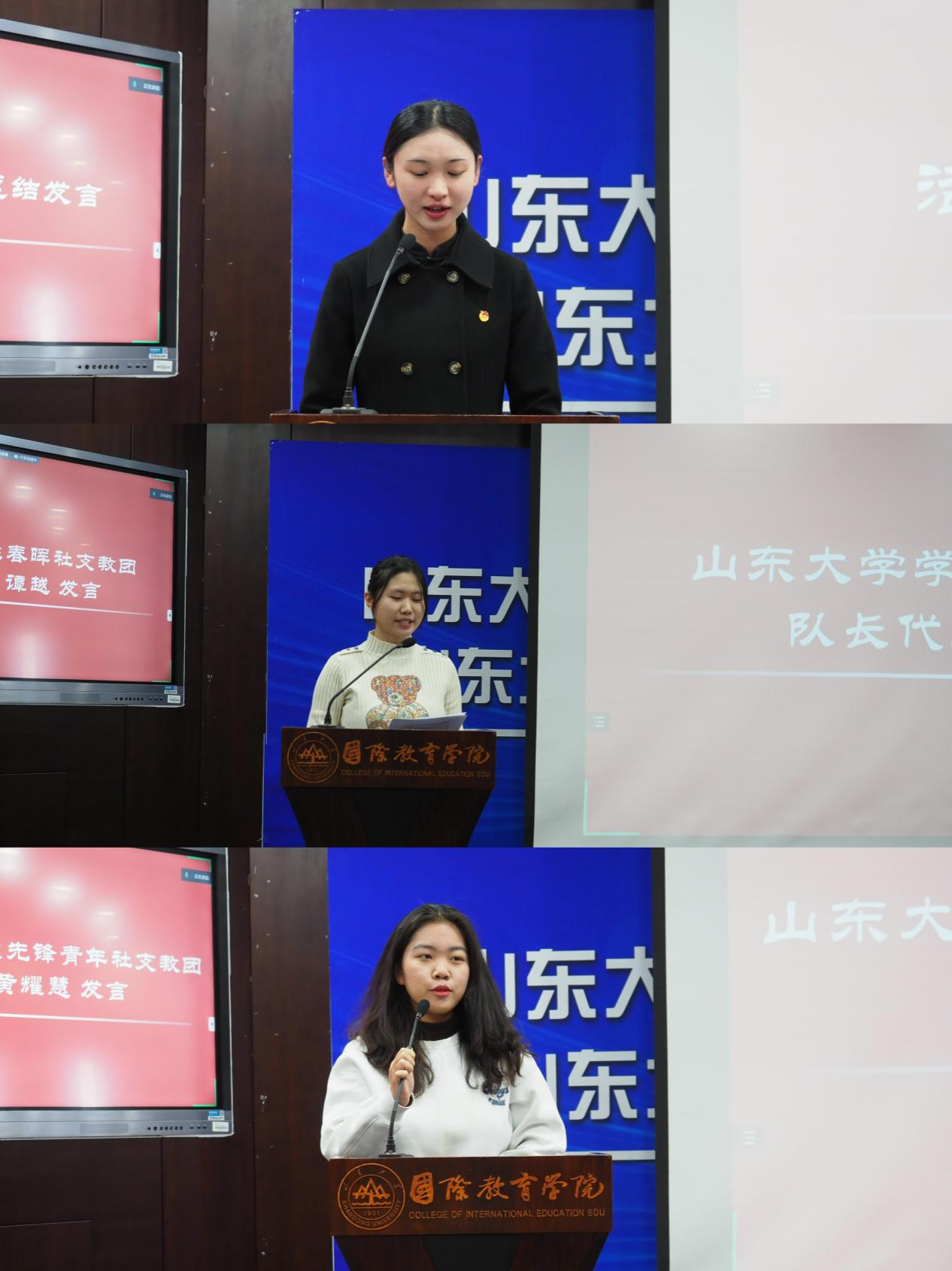 蔡清香对此次培训会暨出征仪式的成功举办表示热烈祝贺,并肯定了山大学子以志愿服务为依托,以茶文化传播为延展,加入乡村产业振兴队伍的青年担当与重要意义。他指出,本次茶文化宣讲活动紧扣了时代主题,是贯彻落实习近平总书记“高度重视茶文化保护传承发展”重要指示的具体行动;体现了山大担当,是青年学子传承弘扬文化自信的切实写照;凸显了育人功能,是新时代铸魂育人工程的生动课堂。他希望各参赛队伍能够“既付出也产出”,在传播中华传统茶文化中躬耕实践,在助力乡村振兴新发展中挺膺担当。郑柔澄在致辞中提出本次活动实现了山大品牌社团联合联动、“传统文化+志愿服务模式”的双重创新,并希望同学们在传播茶文化的过程中讲好山大故事,指出39支宣讲团队将奔赴全国64个地区,充分体现了山大的青年担当和青春力量。王彦伟从习近平总书记强调的茶文化、茶产业、茶科技“三茶”统筹的要求出发,鼓励一校三地的宣讲团成员们发挥专业特色优势,从多学科融合的视角进行思考和探索,深挖中国茶的历史底蕴,丰富茶文化的传播形式。李婧追溯了山大考古与茶文化的历史渊源,肯定了山大学子对于中华优秀传统文化创造性转化、创新性发展的积极探索与实践。