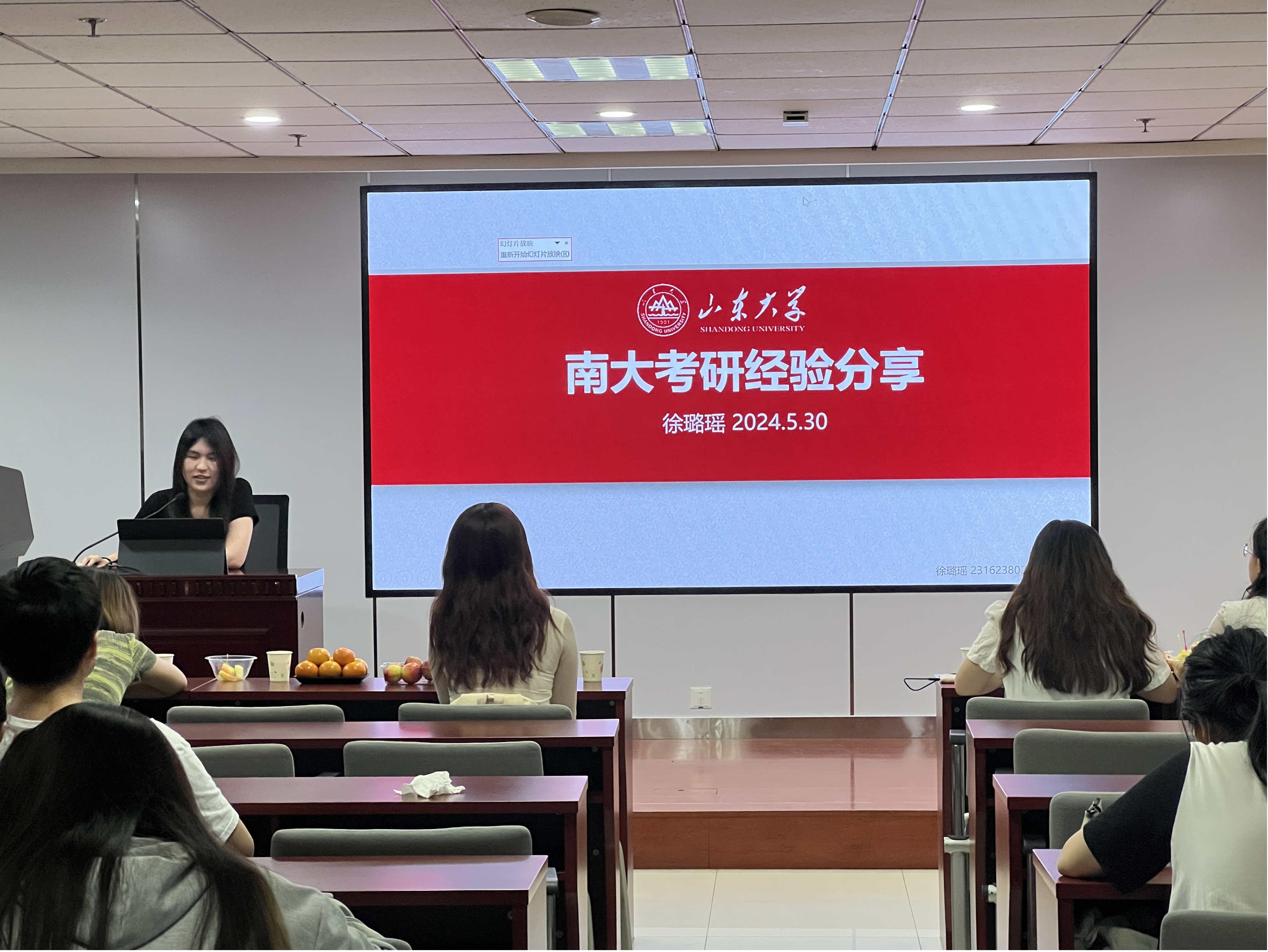 许晓彤老师将交流会进行了模块划分,从升学,就业两大方面介绍了2020级本科生代表的基本情况和活动流程,在对2020级本科生整体方向表达肯定后开始了交流会的分享。