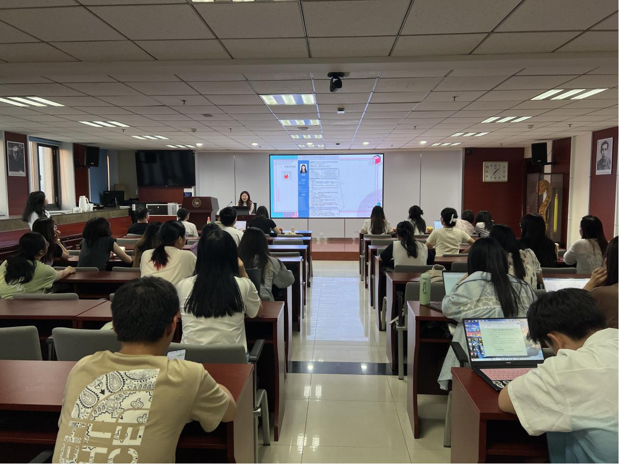 在交流会的升学模块,张婧妍同学分享了自己保研准备的经验,向同学们展示保研时间轴,强调准备工作的重要性。林彧同学则重点分享了留学方面的经验,从文书到雅思学习,将自己的准备经验娓娓道来。于凌晨同学在分享详实保研经验的同时,用自己的经历着重点明平衡心态的重要性,也指出未来天地宽阔。徐璐瑶同学从择校选择、时间规划等方面陈述自己的考研经验,将关注点集中整理。马诗芮同学展示了内容丰富的备考方案,回答了会前提出的三个重点问题。五位同学真诚地总结升学道路的疑难经验和收获感悟,有针对性地回应了同学们在升学方面的提问和困惑。升学模块的最后,许晓彤老师以招生考官的角度对考研问题进行了重点答疑,强调了考研准备态度和初试的重要性。