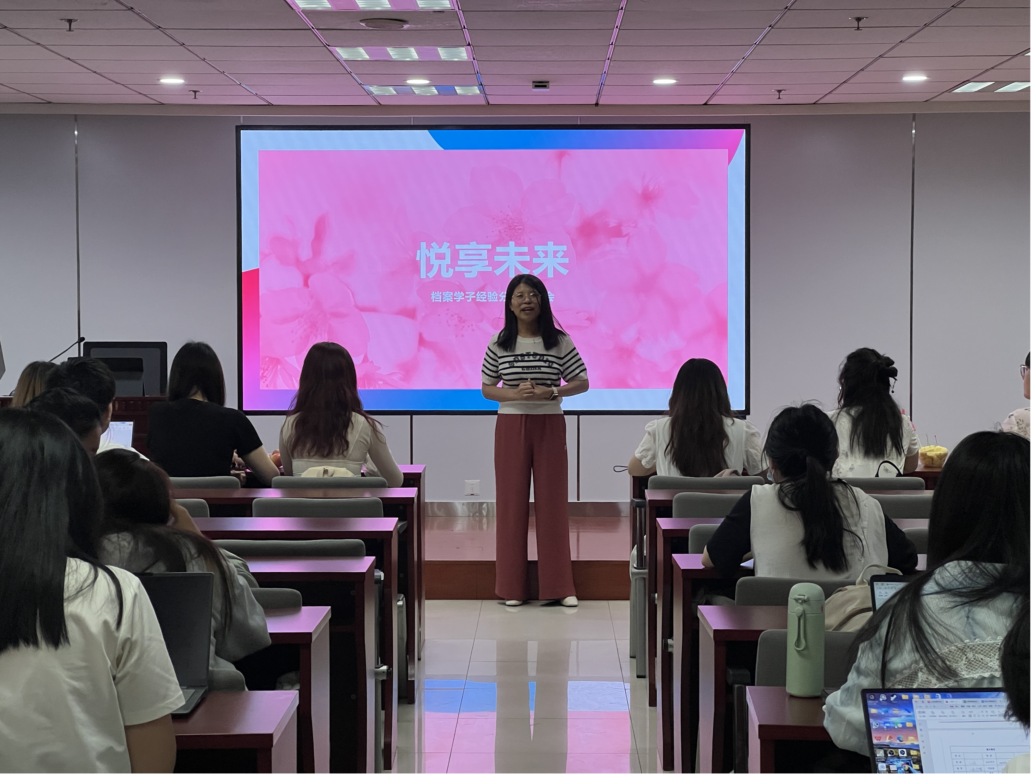 5月30日,兰台之声协会“悦享未来”档案学子成长规划交流会在知新楼A1017举行,2020级档案学本科生代表张婧妍、林彧、于凌晨、徐璐瑶、马诗芮、任婧怡、赵靖雅进行升学就业经验交流分享,许晓彤副教授、王宁助理研究员进行指导,档案学专业各级本科生积极参加。