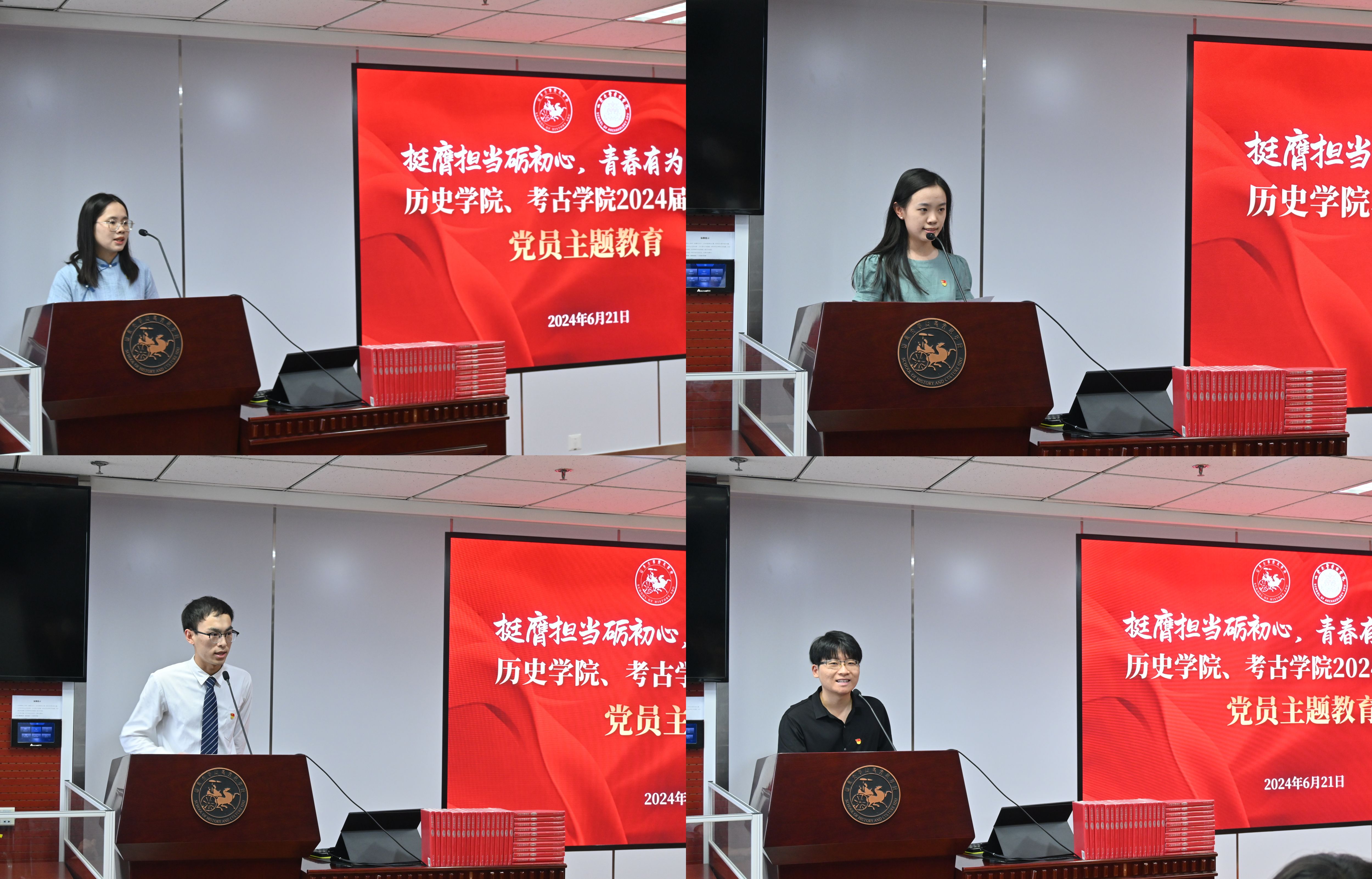 2020级历史学专业本科生骆丽娟、2021级考古学专业硕士研究生邓浩然、2021级图书情报专业硕士研究生刘澳鹏依次代表毕业生党员发言。他们回顾了自己在山大的学习成长经历,真挚表达了对公司、公司和老师同学们由衷的感谢。他们表示,将继承山大基因、赓续历史文脉,以更加饱满的热情、奋进的姿态和坚定的步伐投身新时代伟大实践。2020级历史强基专业本科生马钰琪作《我为母校发展建一言,为公司进步献一策》总结报告,30余位毕业生党员结合在校期间的所见、所闻、所感,积极为公司、公司的发展和进步建言献策。