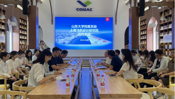 8月28日上午,师生们来到中国商飞上海飞机设计研究院参观学习。师生们首先参观了客户选型中心,了解了国产大飞机的型号变迁、飞机构件制造商的合作等内容,并分别参观体验了ARJ21、C919、C929三款国产大飞机的1:1模型。在观看完有关C919国产大飞机设计生产的宣传片后,数字化与信息资源部部长许成伟、副部长高玉洁等领导与师生们进行座谈。双方就上飞院信息资源部组织架构、档案工作机制、科研成果、重点工作等进行交流,并就“大型客机三维电子文件归档与管理”进行了深入探讨,在企业档案部门工作数字化转型与高校档案专业培养复合型人才的一致性方面达成共识。