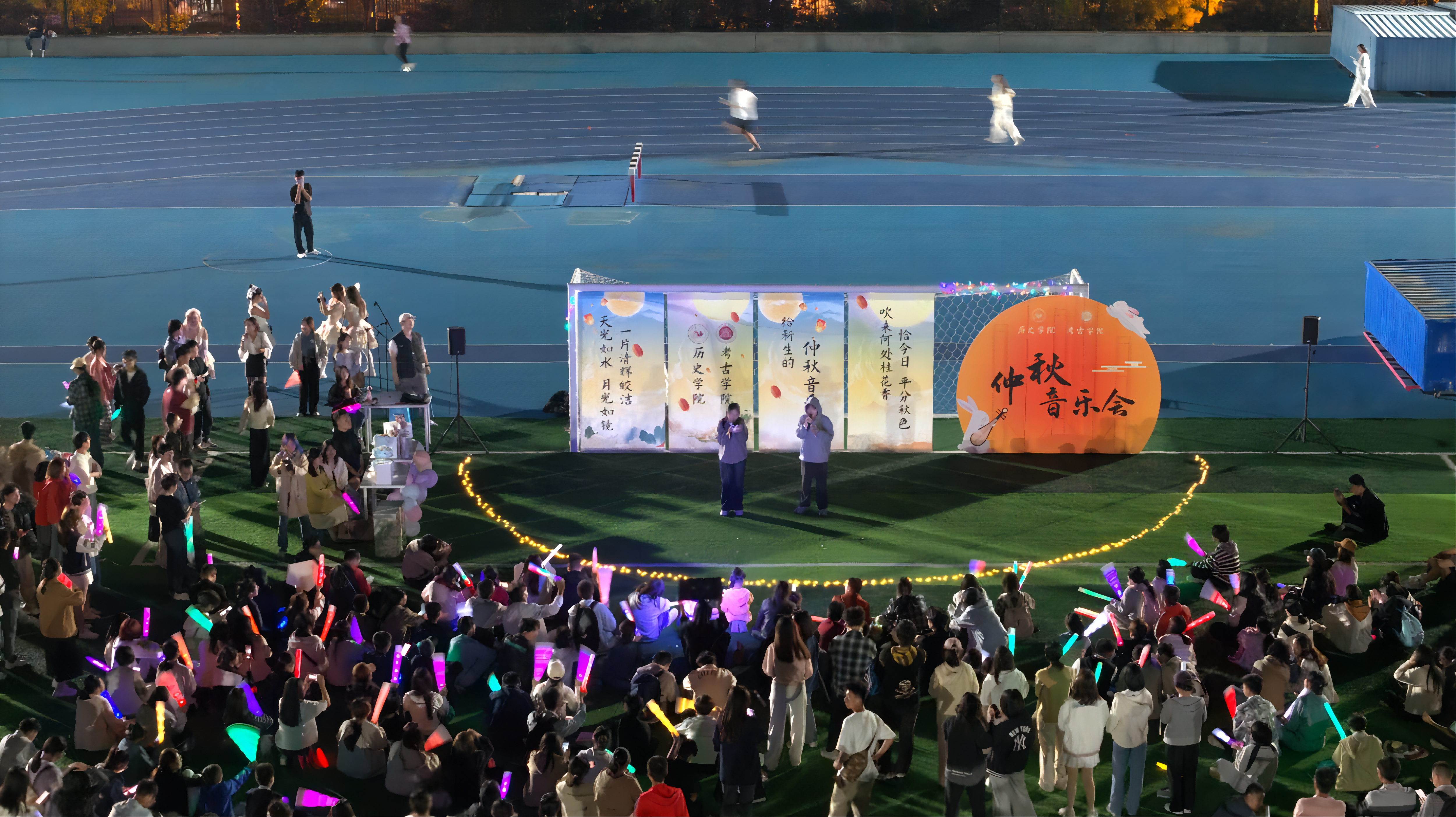 9月22日晚,sunbet在中心校区田径场举办“仲秋序曲——给2024级新生的仲秋音乐会”。sunbet辅导员李虎、刘紫奕、张誉馨、骆丽娟老师,2024级全体新生参加活动。