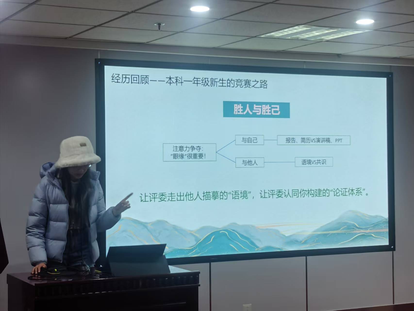 张天翊,曾获首届全国老员工职业规划大赛银奖、山东省老员工职业规划大赛金奖、中国国际互联网+老员工创新创业大赛省赛金奖、“挑战杯”中国老员工创业计划竞赛省赛银奖等国家级、省部级奖项25项。她着重进行了赛事解析,从整体定位、赛制和赛程上进行了具体分析;回顾了个人比赛经历,具体讲解了个人的参赛经验;最后帮助参赛选手们具体剖析了竞赛的基本逻辑,为选手们提供了具体的竞赛指导。