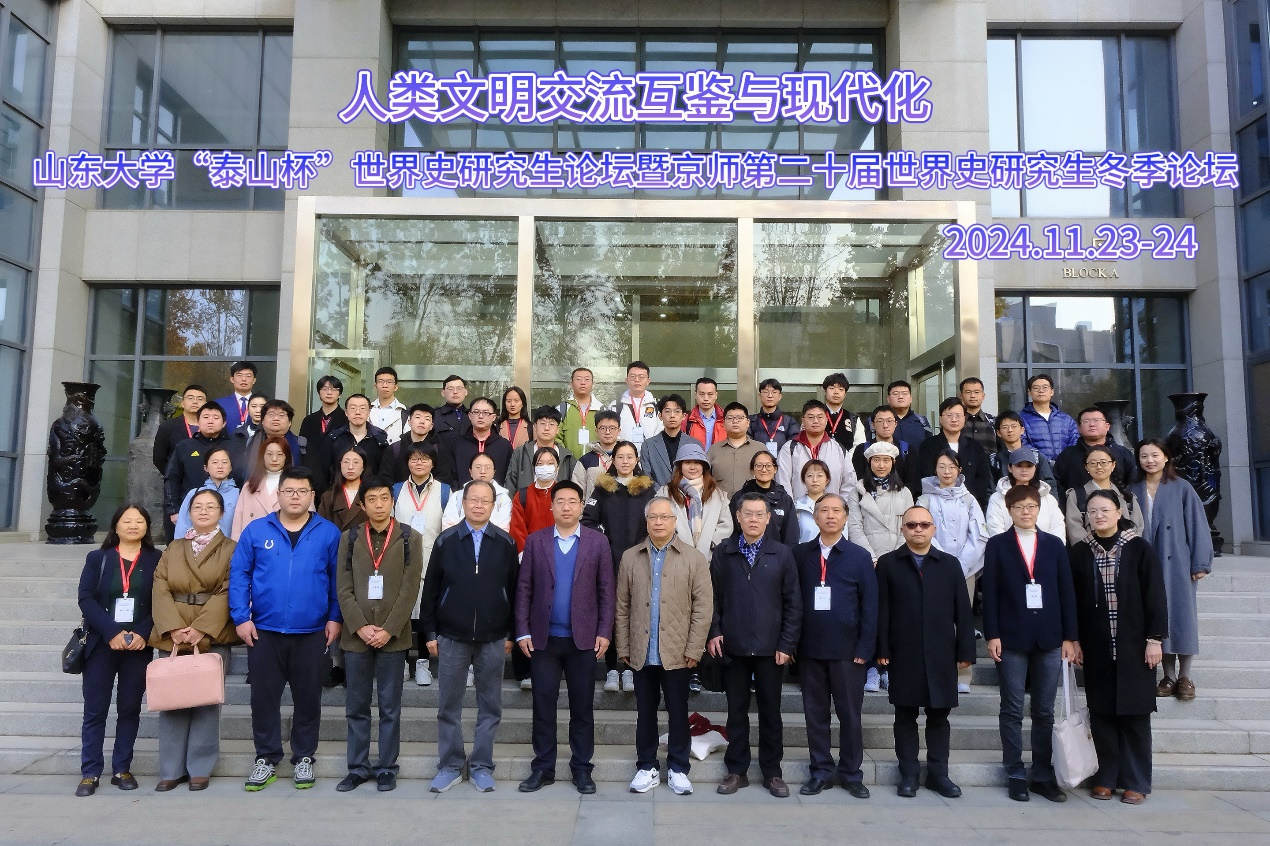 2024年11月22日-24日,sunbet官方网站“泰山杯”世界史研究生论坛暨京师第20届世界史研究生冬季论坛在济南举行。本次论坛由sunbet与北京师范大学sunbet联合举办,主题为“现代化的历史进程与人类文明的交流互鉴”。来自清华大学、复旦大学、杜伦大学、浙江大学、南京大学、中山大学、中国人民大学、南开大学、北京师范大学、中国社科院大学、东北师范大学、华中师范大学、南京师范大学、首都师范大学和sunbet官方网站等28所海内外重点高校的46位博士、硕士研究生参加了本次论坛。南开大学、北京师范大学和sunbet官方网站的24位专家学者应邀参会并对参会论文进行了点评。