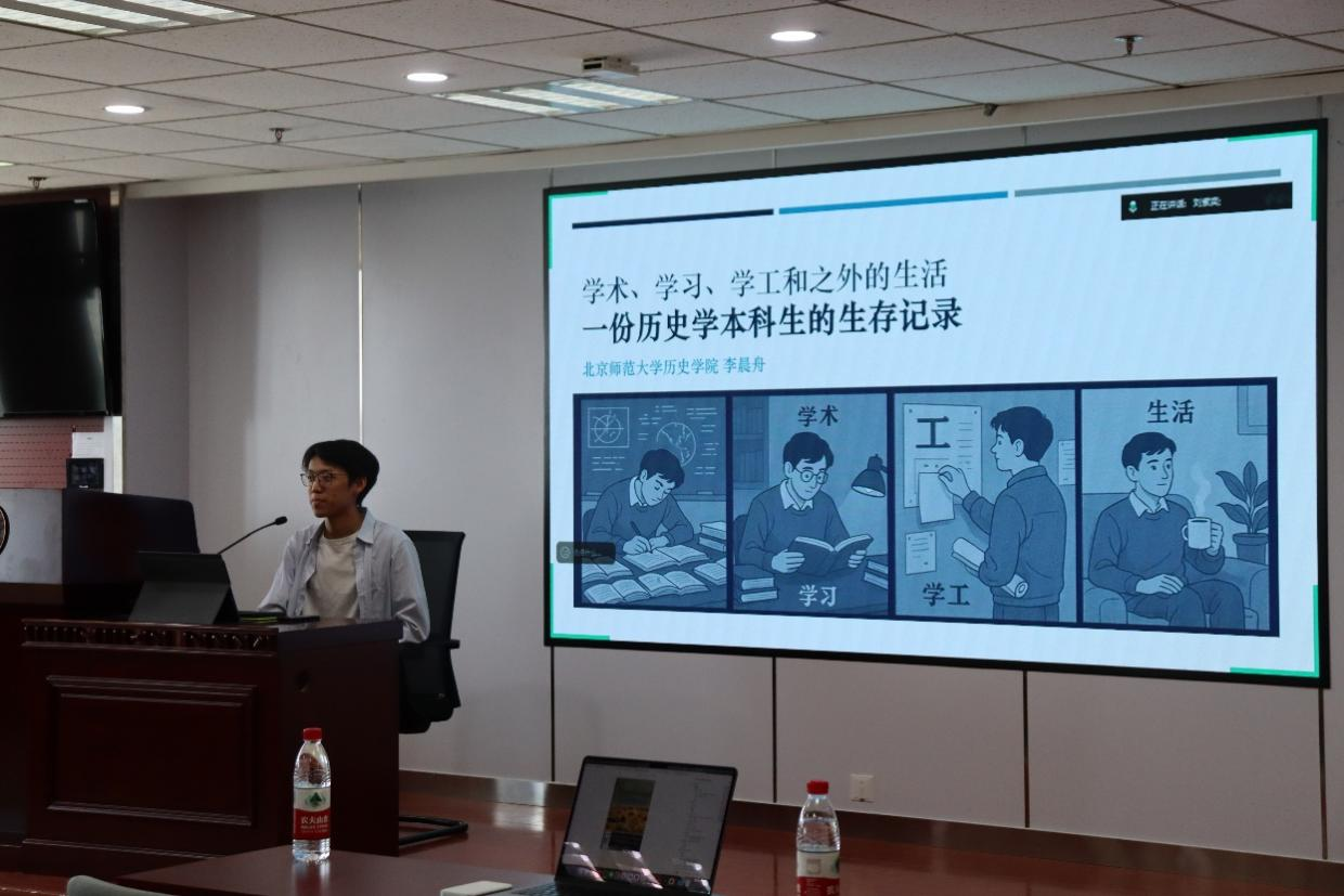 朋辈导师分享环节,北京师范大学员工代表李晨舟同学以“学术、学习、学工和之外的生活:一个历史学本科生的生存记录”为题,从学术、学习、员工工作和生活四个维度展开分享。他提出,本科生投身学术需以兴趣为基石,在广泛积累中寻找方向,同时强调学术研究需具备自驱力与开放视野。在方法论层面,他推荐使用文献管理工具和豆瓣书评拓展阅读资源,并建议跨校选课、构建学术交流圈以突破信息壁垒。此外,他还结合课堂学习与考试策略,指出需优化复习材料以提升效率,提供了宝贵的期末复习方法建议。员工工作方面,他分享了学工的意义和选择方法,但同时提出要适时进退合理安排时间。生活方面鼓励大家寻找多元生活方式,打造自己的核心竞争力。