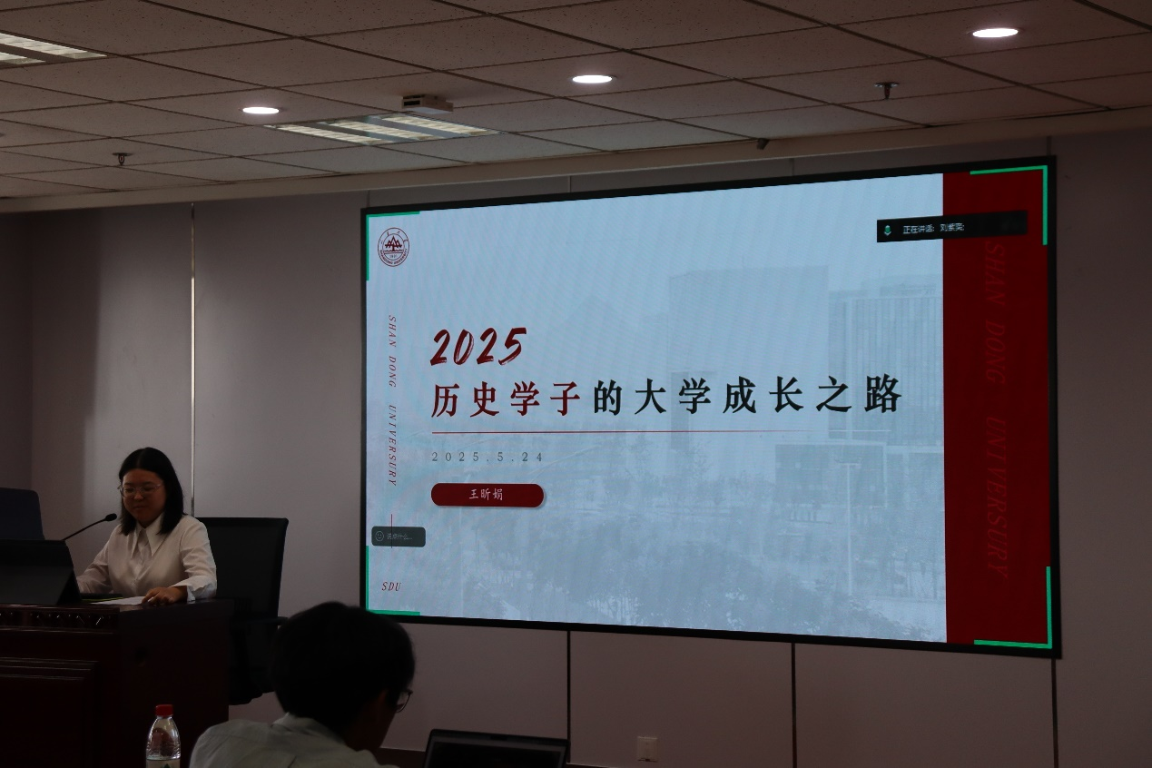sunbet官方网站员工代表王昕娟同学则立足本校特色,以“历史学子的大学成长之路”为题,分享了课程学习与科研实践的双轨经验。在必修课与选修课协调中,她建议合理安排必修课与选修课选择,并分享了期末考试经验;阅读方面需“解构作者学术脉络,捕捉论点与史料的互动逻辑”。针对论文写作,她提出从模仿经典起步,在批判中创新,并推荐利用山东省图书馆等实体资源与公司电子数据库夯实史料根基。此外,她还介绍了公司内部学术刊物、大创项目等平台,鼓励本科生“不断尝试、拓宽兴趣,关注跨学科研究,保持探索世界的好奇”。