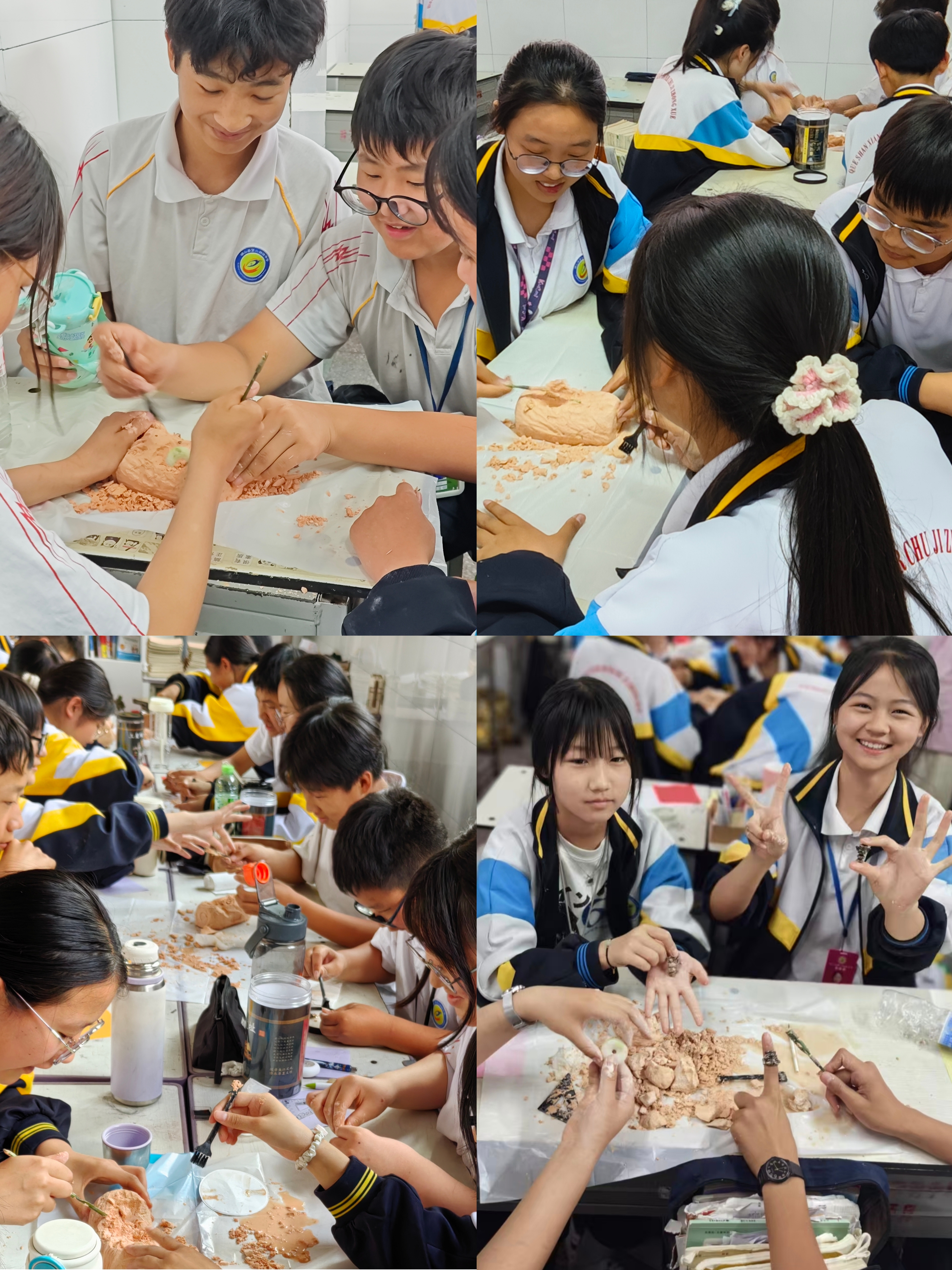 孩子们在小组合作探、铲、刷、清的过程中,开启了走近文物、理解历史的全新视角,七年级三班刘同学分享到“挖出了带面罩的‘结界兽’特别开心,这次‘考古’活动让我感受到文物的神秘感,只有靠自己的双手挖掘,才能揭开一层层历史的面纱”。