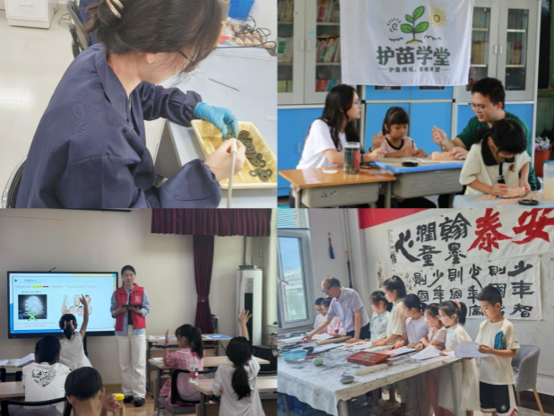 开展政务见习行动,鼎心助海岱社会实践队参与“青鸟计划”,前往县级工会、社区街道等单位,助力民生保障工作;深入考古工地,在鲁国故城、滕州岗上遗址等地实习,力求精准还原历史遗迹。开展专业特色支教,“青垚育苗”社会实践队打造《陶片会说话》《穿越百万年》《探秘壳丘头》“考古科普三部曲”,“文脉筑梦”社会实践队设计《文物也有身份证》等11节考古知识讲解课,“海韵扬帆”支教队开展撒野农场“文化传承课堂+户外实践体验”多元化支教,泉润青禾支教队、“萤窗共话”实践队、“启思辨明”社区实践队、“叩问千年·器识纹章”传统文化宣讲队联动社区推动折纸、绘画、书法、古诗词鉴赏等中华优秀传统文化进课堂,在理论与实践的双向赋能中,赓续中华文明千年根脉。