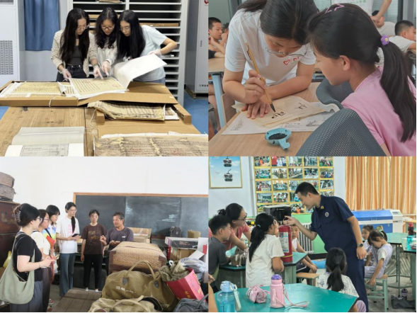 服务国家重大战略,“中国遗产,杉乡记忆”调研团赴贵州黔东南州开展锦屏文书、活态档案馆、传统村落建档等民族特色调研,为锦屏文书申遗及保护工作提供专业支持。服务区域发展重点,“红韵赋能”调研队深入马家埠红色博物馆等地,系统探究红色资源赋能乡村振兴的创新实践;“莒光探微”实践队实地走访博物馆,对话省级非遗传承人,系统论证莒文化从地域方国融入中华文明体系的历程;夏山育苗队、莒光育苗队、齐思妙湘队、青筱筑梦队开设植物拓染、非遗核雕、普通话训练、单片机科普等多元课程,联合当地检察官开展防校园暴力讲座,助力乡村教育振兴。服务公司事业发展,sunbet官方网站尼诺剧社“艺界互联,云端创梦”交流团与华中科技大学戏剧团开展“NERO TALK”,围绕社团管理、活动运营等深入交流,探索校际合作新模式,共促校园戏剧文化发展。