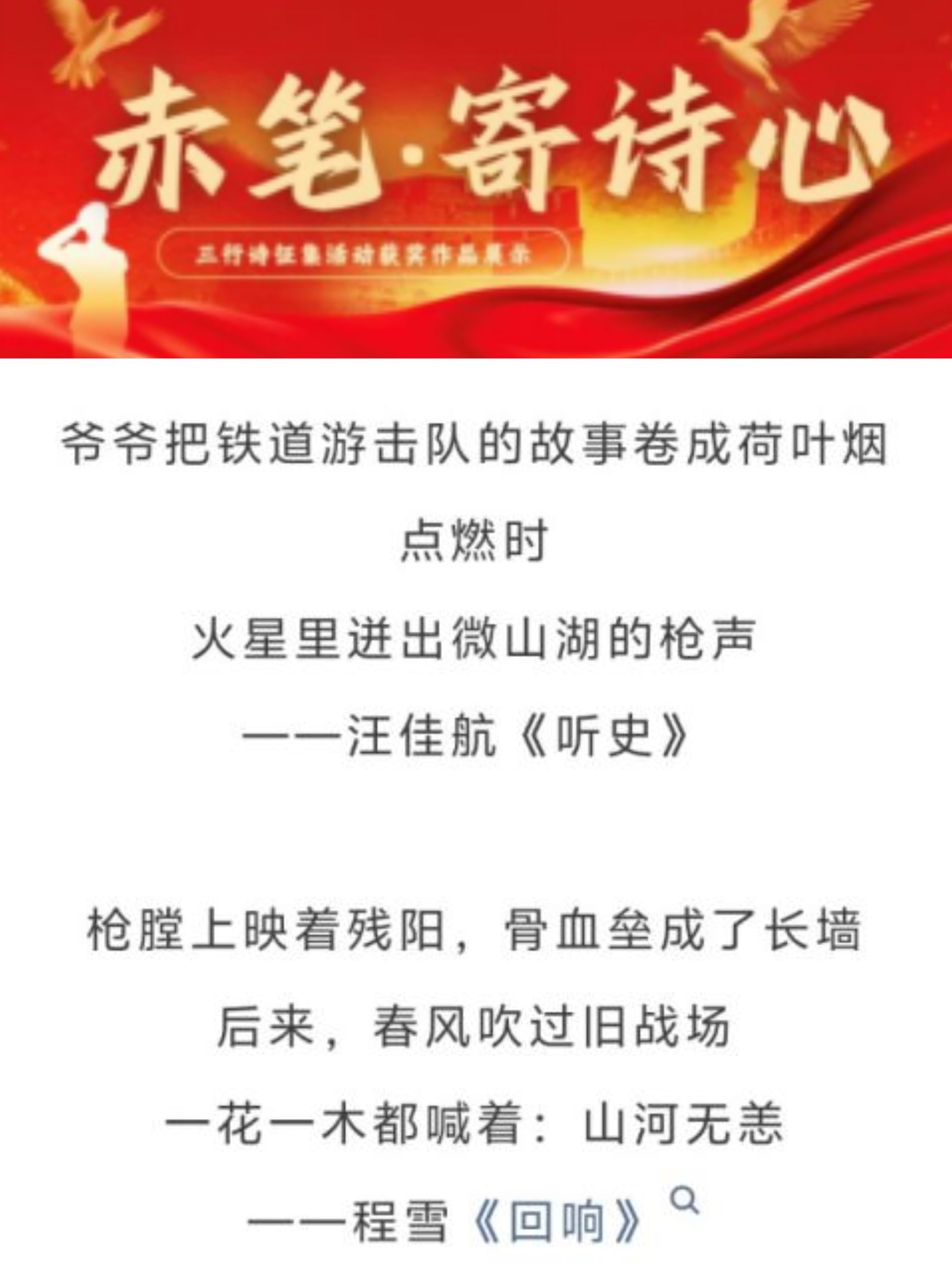 开展“赤笔·寄诗心”三行诗征集活动,以三行短诗的形式缅怀革命先烈,以诗寄情,以句铭志。同学们笔下的短诗,情真意切,笔尖书写初心,凝聚着对抗战先烈的深切缅怀和炽热的爱国情怀。