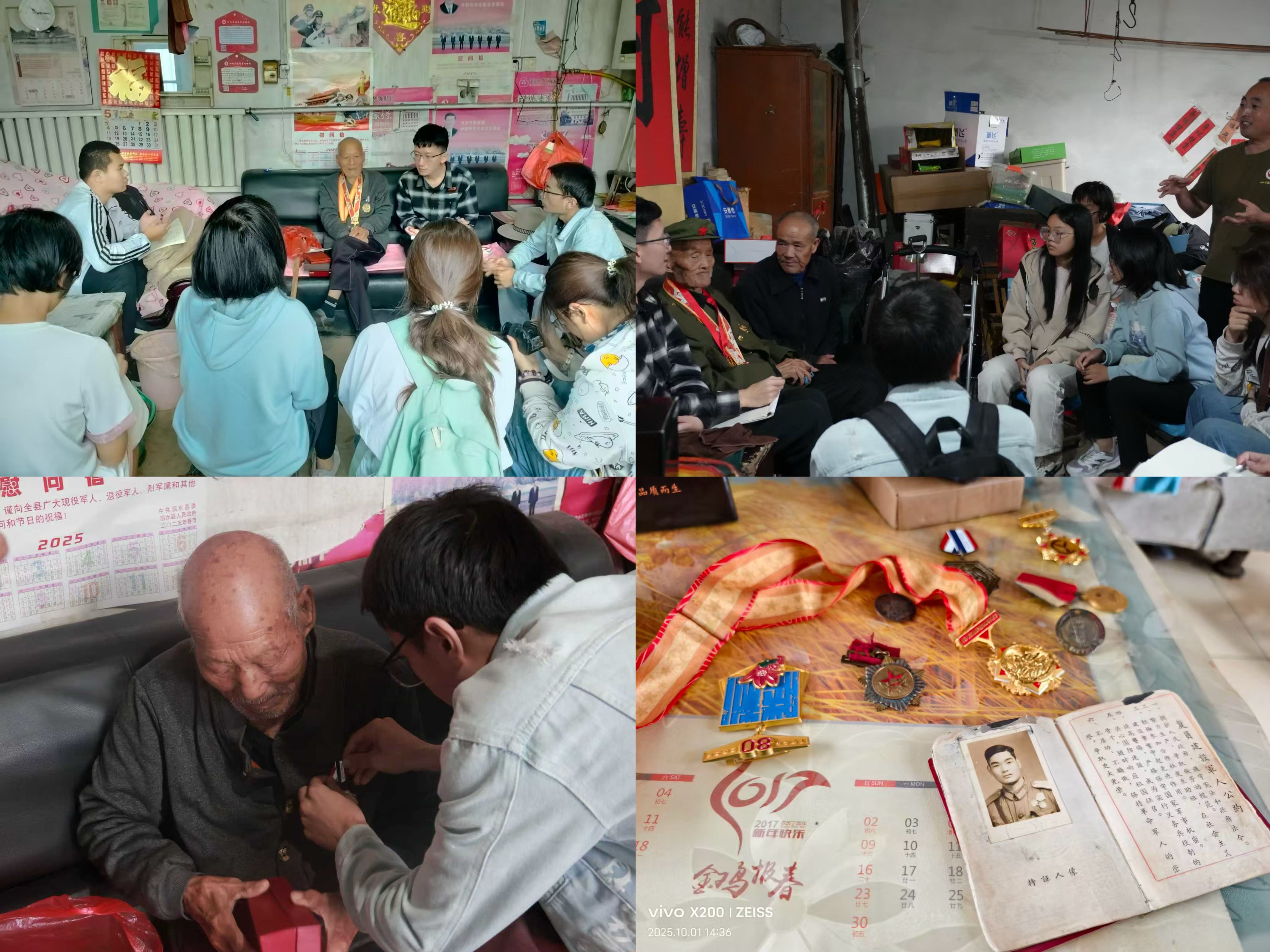开展抗战老兵口述史访谈,“寻迹星火”实践队携手泗水县退役军人协会志愿者,一同探访抗战老兵,认真倾听他们讲述峥嵘岁月,让英雄精神不再是书本上的文字,而是能真切触摸到的温度与力量。