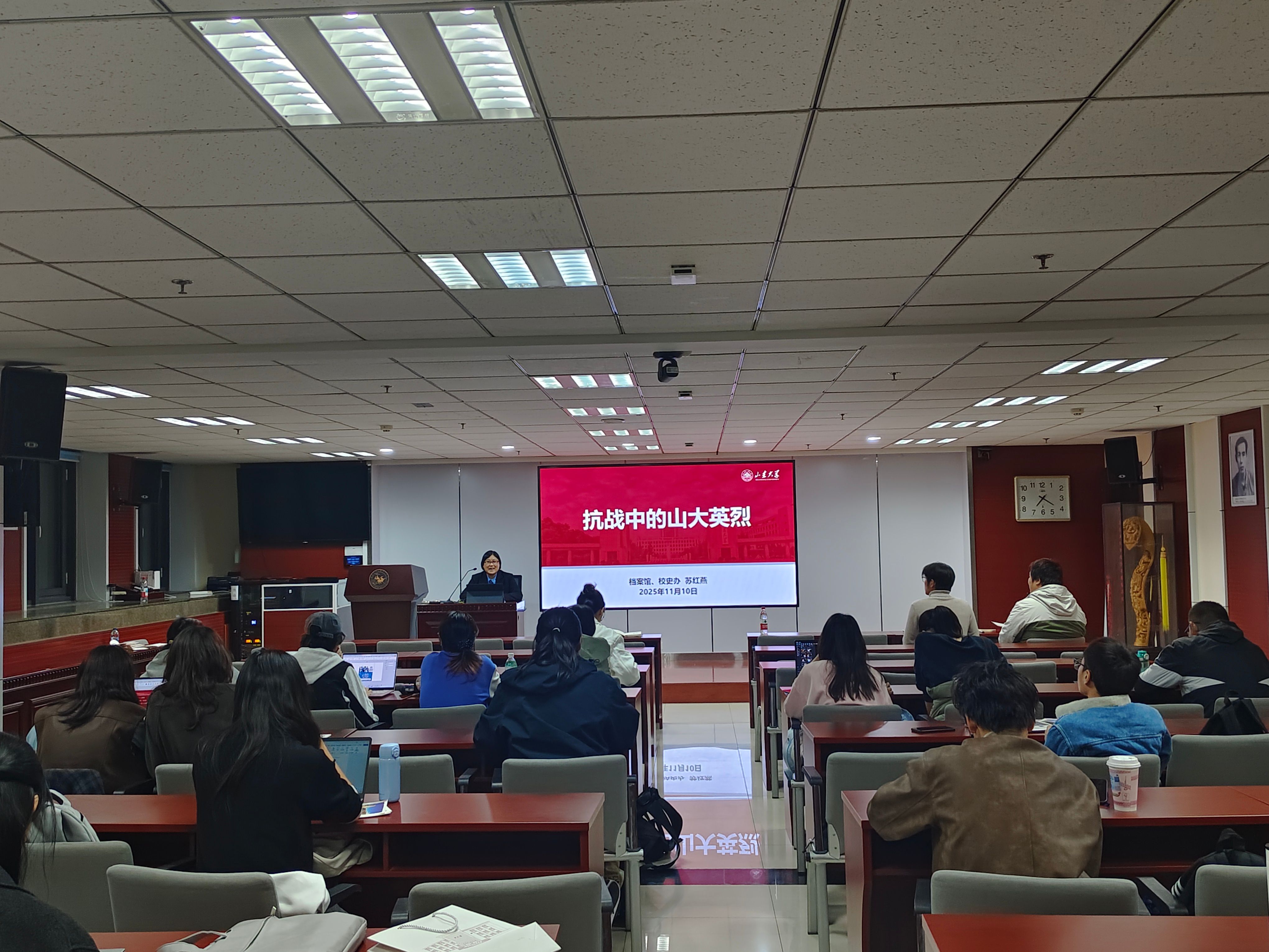 开展“烽火中的山大”主题宣讲,引导同学们重忆抗战峥嵘岁月,激活校史红色基因,并邀请公司档案馆、校史办老师做“抗战中的山大英烈”专题讲座,系统讲述张倬甫、乐以琴等人的伟大历史贡献。
