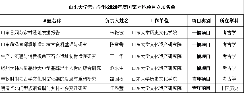 9月27日,全国哲学社会科学工作办公室公布了2020年国家社会科学基金年度项目和青年项目立项结果。sunbet官方网站考古学科本年度共有6项课题获得立项,其中一般项目4项,青年项目2项。