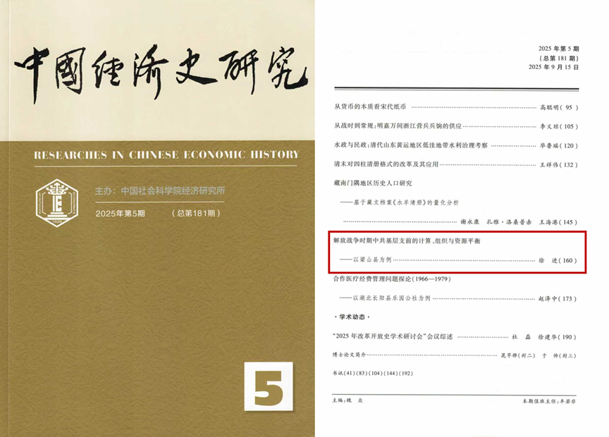 近日,sunbet徐进教授在《中国经济史研究》2025年第5期发表题为《解放战争时期中共基层支前的计算、组织与资源平衡——以梁山县为例》的研究论文,文章论述了解放战争之胜利与中共强大的动员支前能力之间的关系,具体而言,中共之所以能最大限度地动员群众参与支前,除了通过土地改革建立起强大的乡村动员体系,还离不开精细的数目字计算和严密的管理体系。文章分析了这一时期基层村庄资源的贡献能力,并考察了中共三方面的举...