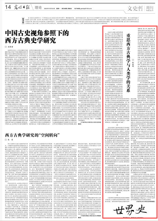 10月20日,公司张新刚教授在《光明日报》理论版发表文章《重思西方古典学与人类学的关系》。文章回顾了19世纪以来西方古典学与人类学两个学科的关系历史,指出19世纪到20世纪初,人类学与西方古典学保持着密切的关联,西方古代社会既是欧洲的过去,也是人类学民族志上的他者。两个学科的蜜月期也涌现了众多影响深远的学者,如巴霍芬、摩尔根、梅因、库朗热、弗雷泽等,古典学的研究成果也成为理解当时人类社会的重要参照。人类...