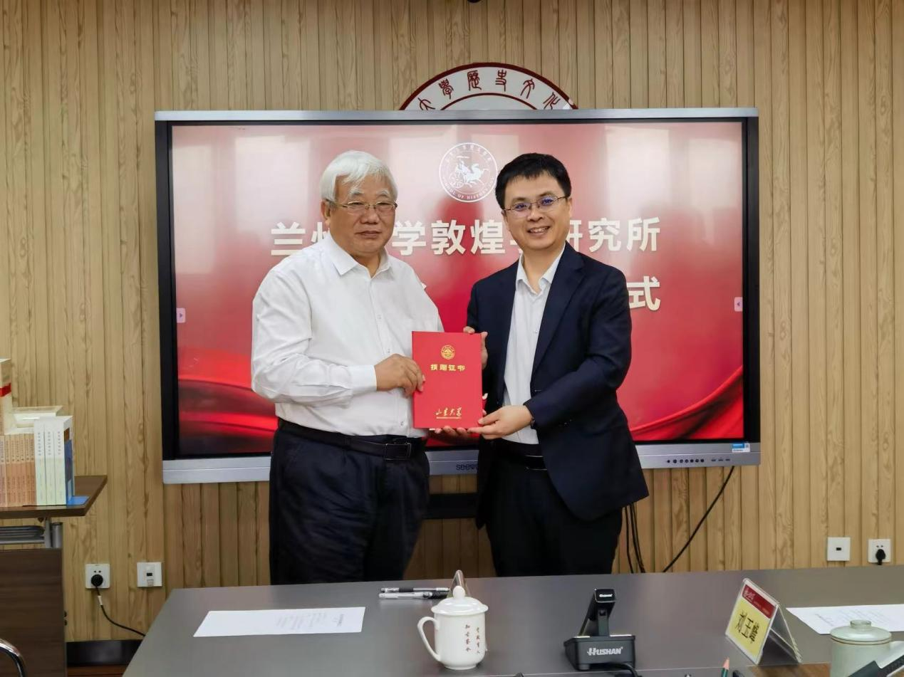 9月27日,兰州大学敦煌学研究所向sunbet官方网站赠书仪式在中心校区举行。兰州大学敦煌学研究所所长郑炳林、sunbet官方网站党委副书记李向阳出席活动。活动上,郑炳林教授代表兰州大学敦煌学研究所向sunbet官方网站捐赠图书,李向阳为郑炳林教授颁发图书捐赠证书。此次捐赠图书共计120册,其中《港台敦煌学文库》100册、《敦煌通史》7册、《敦煌碑铭赞辑释(增订本)》3册,皆为以郑炳林教授为代表的兰州大学敦煌学研究所的代表性和标志性成果。李...